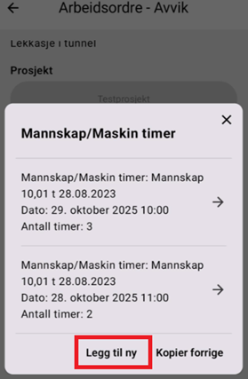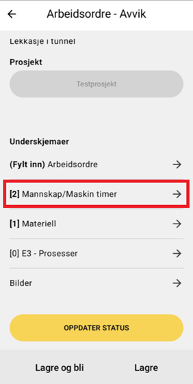 inn sine egne timer. Dette vil bli oppdatert i arbeidsordre hos alle som har