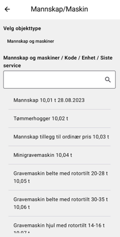 Om det hos deg kommer opp en database på mannskap og en på maskin må du velge om du skal se mannskap eller maskin.
