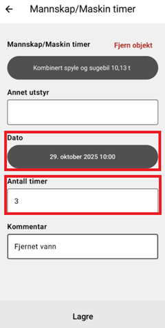 Har du med deg en underentreprenør uten tilgang, kan du legge inn timer for de med f.eks. navn på UE i kommentarfeltet.