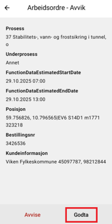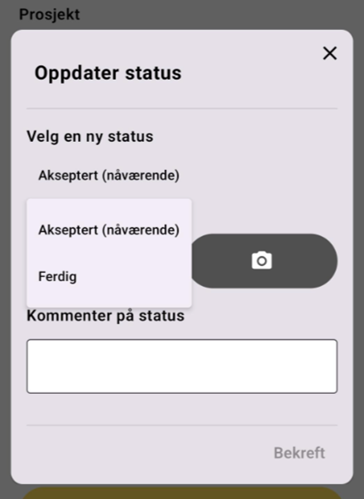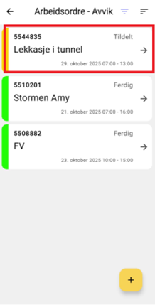 OBS! Om flere jobber på samme arbeidsordre og har fått denne sendt ut i sin app må dere bli enige om hvem som setter status ferdig. Den vil da oppdateres som ferdig i alle apper.