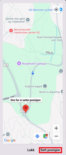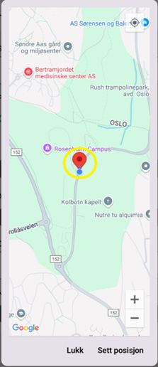 kartet. Denne kan endres ved å klikke på rett posisjon i kartet, da vil nålen