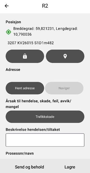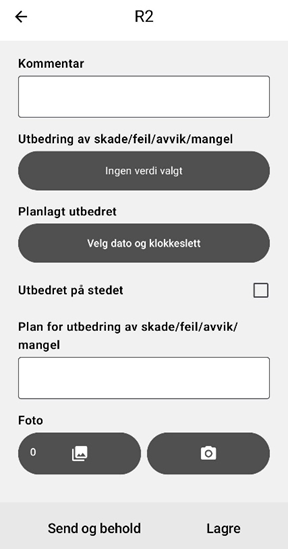 Velg R2 og fyll ut årsak og beskrivelse